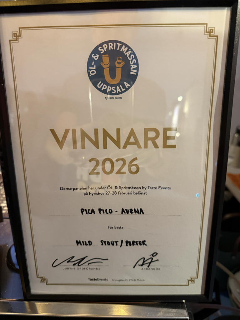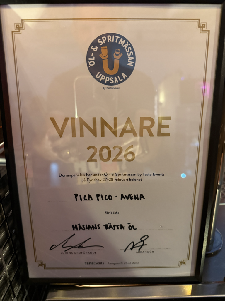 På Öl- och Spritmässan i Uppsala utsåg juryn vår havrestout Pica Pico Avena till mässans bästa öl.